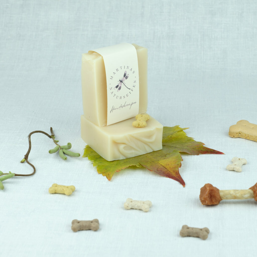 Hundeshampooseife/Tierseife für ihren Vierbeiner – Sie ist auch nur mit 5% überfettet. Sie enthält Lanolin, sorgt zusätzlich für die Fellpflege. Außerdem gibt’s viel Teebaum und Lorbeeröl darin, es hilft gegen Flöhe und Zecken. Sie schäumt sehr gut und ist mit einer Größe von 150g auch sehr ergiebig.