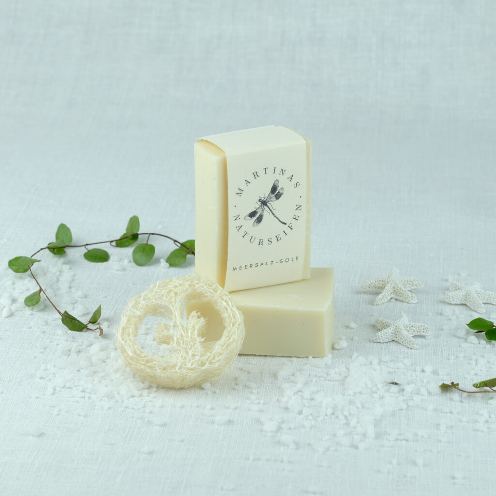 Meersalz-Sole – Ungefärbt und unbeduftet und mit 15% überfettet. Besonders für empfindliche Haut geeignet. Das Salz wirkt belebend, pflegend und feuchtigkeitsspendend ohne die Haut auszutrocknen.